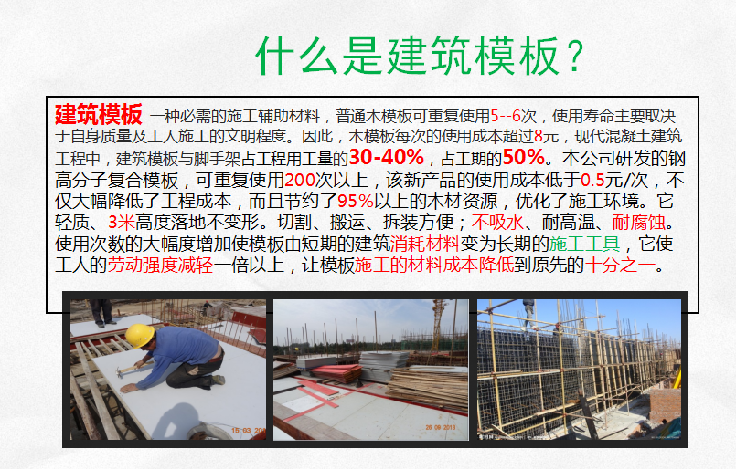 耐腐蝕耐高溫周轉次數是木模板20-30倍